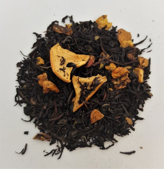 The scent of crispy, baked apples brings back memories of childhood and of Grandma’s cozy, warm and wonderful kitchen, full of overflowing baskets of home-grown fruits. The intense flavour of candied, sweet, baked apples unfolds on a fine, mild, aromatic black tea blend. A hint of creamy vanilla rounds off the sweetish but at the same time fresh taste experience perfectly. Drinking this tea will always remind you of the days of your childhood!