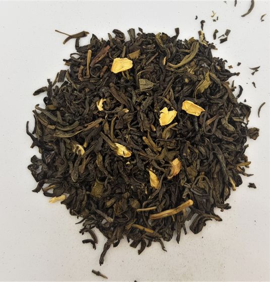 The basis for this Chinese speciality is a green tea to which fresh jasmine blossoms are added during the drying period. The blossoms are partially removed later. The classical flavouring technique has been known in China for some 1,000 years. Jasmine tea is practically the Chinese national drink and is consumed at any time of day and on every occasion. This quality is one of the most popular. This mellow blend still has quite a few blossoms, which leave an intense, flowery jasmine taste and scent.