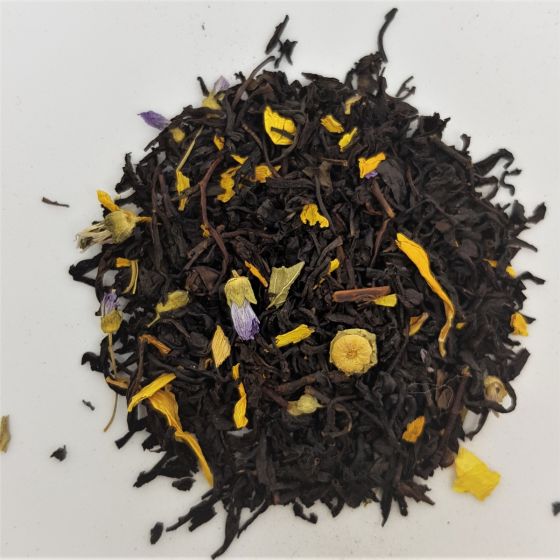 This extraordinary creation provides heavenly enjoyment! The mild, smoky and full-bodied China-Ceylon blend harmonizes wonderfully with the strong and fruity flavour of peaches and apricots. Nuances of red berries enriched by a hint of creamy vanilla perfect this blend. This completely balanced tea creation, which has been ennobled by the colours of the blazing sun and the sky, is a heavenly pleasure not only for little angels. A permanent hit in our assortment.