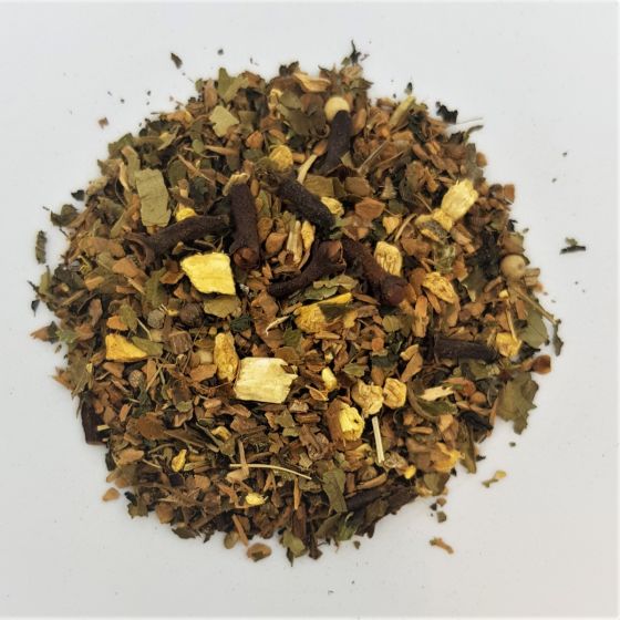 Yoga tea is the Indian classic among the Ayurvedic tea varieties. In our blend you will find stinging nettle leaves in addition to the classical, spicy ingredients. A warm drink for cold days and pleasant at any time. We recommend the classic preparation or the black tea preparation. Classical preparation: Boil 11 g “Yoga Tea” in approx. 1 litre of water for about 30 minutes, filter it and add 1/4 litre milk. It can be sweetened with honey, if you like. Preparation with black tea: Boil 11 g “Yoga Tea” in approx. 1 litre water for about 30 minutes. Add 6 g black tea (we recommend our Ceylon Highgrown # 22453 on page 55) and let it brew for another 3 – 5 minutes. Filter and add milk and if you like, sweeten to taste.